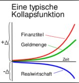 Greenspan half mit seinem Vorgehen im wesentlichen den Banken, deren Kassen sich durch die Ereignisse des Oktober 1987 geleert hatten, aus der Klemme, indem die hypothekengesicherten Wertpapierpakete von Fannie Mae und Freddie Mac entsprechend umfunktioniert wurden. Aus dem gleichen Grund wurde die Immobilienblase bis zu ihren heutigen krebsartigen Ausmaßen aufgebauscht. Dies lieferte wiederum die Grundlage für die Ausgabe von Geld und davon abgeleiteten Wertpapieren, woraus dann eine hyperinflationäre Expansion bei gleichzeitig schrumpfender Realwirtschaft werden sollte (siehe Abb. 1, meine Typische Kollapsfunktion).