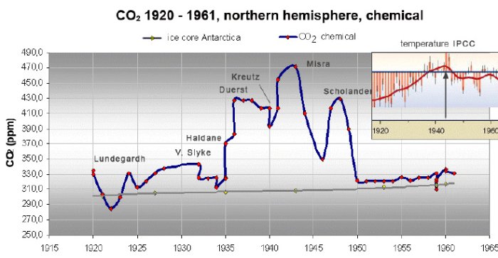 Was heute den Lügnern des IPCC zum Nachteil gereicht, ist, daß das Messen des atmosphärischen CO2-Gehaltes ein besonderes Anliegen der Chemiker seit im frühen 19. Jahrhundert war, als der Vorgang der Photosynthese aufgeklärt wurde, und ihre sorgfältig dokumentierten Messungen sind uns bis heute erhalten geblieben. Die unbequeme Wahrheit ist, daß Al Gore leider immer noch aktiv ist, doch nur Narren und unverbesserliche Bildzeitungsleser schenken seinen Ergüssen irgendwelchen Glauben.
