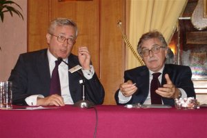 Pressekonferenz zusammen mit Senatorin Lidia Menapace, einem Mitglied des Verteidigungsausschusses des Senats, die LaRouches Vortrag organisiert hatte.