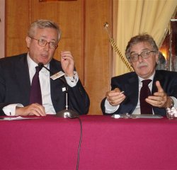 Thema, die Alternative zwischen New Deal und freier Marktwirtschaft, hatte Tremonti am 6. Juni mit Lyndon LaRouche und Alfonso Gianni, Staatssekretär im Ministerium für wirtschaftliche Entwicklung (rechts), bei einer öffentlichen Konferenz in Rom diskutiert.
