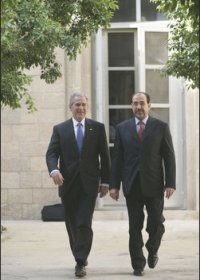 Nur eine drastische Wende der amerikanischen Politik hin zur Zusammenarbeit mit Rußland, China und Indien kann die Krise im Irak unter Kontrolle bringen. Das Bild zeigt Präsident Bush und der irakische Premierminister Nouri al-Maliki.