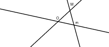 Es besteht eine konstante Proportion zwischen den Seiten des Dreiecks, auch wenn es immer kleiner wird, und unabhängig davon, auf welcher Seite des Dreiecks O liegt. Aber was geschieht in dem Moment, wenn das Dreieck von der einen auf die andere Seite wechselt? In diesem Moment werden die Seiten kleiner als alles, was man sich vorstellen könnte, aber an den Winkeln hat sich nichts geändert, was die Proportion aufheben könnte. Die Seiten sind zwar verschwunden, aber die Proportion besteht weiter!