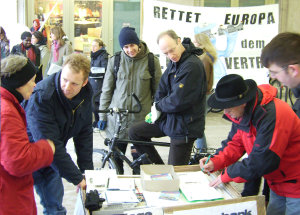 In 23 europäischen Städten fanden am 23. April „Mittwochsdemonstrationen“ gegen den Lissabon-Vertrag statt. Hier eine Aktion in