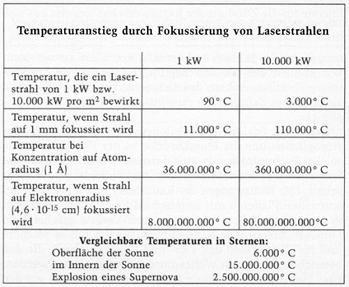 Abbildung 6 zeigt die drastische Steigerung der Temperatur, wenn man Licht im Laser konzentriert.
