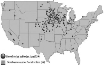Im „Maisgürtel“ der Vereinigten Staaten gibt es etliche Äthanolfabriken, in denen kostbare Nahrungsmittel
