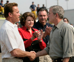 Kaliforniens Gouverneur Arnold Schwarzenegger und US-Präsident George Bush haben gegenüber den ärmeren Bevölkerungsschichten die gleiche Einstellung: „Schwimme, wer schwimmen kann, und wer zu plump ist, geh unter.“