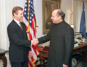 Der frühere pakistanische Premierminister Nawas Scharif (hier 1998 vor seinem Sturz mit dem damaligen US-Verteidigungsminister Cohen) gehört heute zu den treibenden Kräften bei der neuerlichen Destabilisierung des Landes.