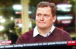 Tom Gillesberg während seines Interviews im dänischen Fernsehsender TV2-News.