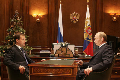 Rußlands Präsident Dmitrij Medwedjew (links) und sein Vorgänger, der jetzige Ministerpräsident Wladimir Putin, beraten über die Energielieferungen an die Ukraine.