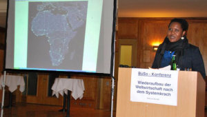 Eines der Themen der Berliner Veranstaltung war die Notwendigkeit der Industrialisierung Afrikas. Am Rednerpult: Portia Tarumbwa-Strid