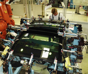 schaft viel schlimmer. Bild: Produktion des Dachsystems für den Renault Megane beim Autohersteller Karmann, der Anfang April Insolvenz anmelden mußte.