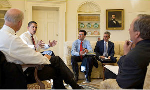 Die Wirtschaftsberater von Präsident Obama (hier bei den Verhandlungen über den Regierungshaushalt 2010) kommen zunehmend unter Druck.