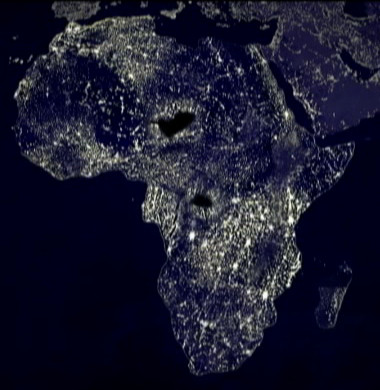 Das Vorhandensein einer entwickelten Zivilisation erkennt man aus dem Weltraum am besten bei Nacht: Dann sieht man aufgrund der zahlreichen Lichtquellen, wo große Städte und dichtbesiedelte Regionen liegen. In fünfzig Jahren könnte Afrika bei Nacht aus dem Weltraum ungefähr so aussehen.