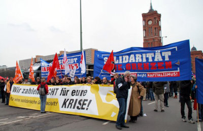 Wenn weiter Geld gedruckt wird, um die Spekulanten vor dem Konkurs zu bewahren, wird es bald zu Unruhen kommen: Großdemonstration gegen den G20-Finanzgipfel am 28. März in Berlin.