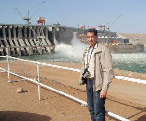 Hussein Askary von der LaRouche-Bewegung in Schweden vor dem Merowe-Staudamm.