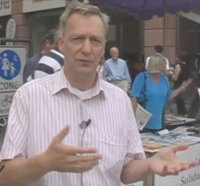 Ich habe mich dazu entschlossen, anzutreten, auch wenn es sehr schwierig sein wird als Direktkandidat gegen die großen Parteien, weil ich einfach entsetzt bin von dem, was in Berlin beschlossen wird - sei es der Lissabon-Vertrag oder sei es die angebliche Lösung der Wirtschaftskrise mit den Konjunkturpaketen und den Rettungspaketen für die Banken. Ich finde, es ist ein Riesenskandal, was da gemacht worden ist, daß man Milliarden verpulvert für die Forderungen von Privatleuten.