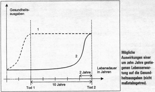 Ezekiel Emanuel ist der Hauptgesundheitsberater von Obama. Er hat also diese Kurve. Das ist die Idee, daß die hauptsächlichen Gesundheitskosten in den letzten zwei Lebensjahren auftreten, und daß selbst dann, wenn man die Lebenserwartung um 10 Jahre erhöht, die Kosten immer noch in den letzten zwei Jahren auftauchen, und man deshalb diese Kosten reduzieren muß, wenn man sparen will. Und eine seiner Vorschläge ist eben, daß man bei Demenzkranken keine Antibiotika mehr gibt, wenn sie Lungenentzündungen kriegen, oder ähnliches.