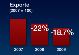 Das sind die Exportzahlen, also auf Jahresbasis von Juli 2008 zu Juli 2009 immerhin -18,7%. Das ist ein Fünftel. Das ist also nicht wenig... Das sind die Exporte von 2007 bis 2008: -22%. Und dann nochmal bis 2009: -18,7%.