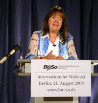 Da die Massenmedien darauf hinwirkten, daß die wichtigen Fragen im Wahlkampf nicht diskutiert wurden, wendete sich Helga Zepp- LaRouche mit drei eigenen Internetforen direkt an die Bevölkerung - wie hier am 21. August.