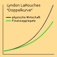 In einer gesunden Volkswirtschaft gibt es keine „Werte“, die bloß durch Gelderzeugung entstehen, das Finanzsystem steht ganz im Dienst der physischen Wirtschaft (obere Kurve).