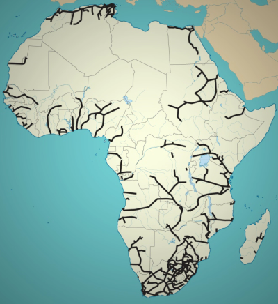 Das heutige Eisenbahnnetz Afrikas (oben) ist genaugenommen