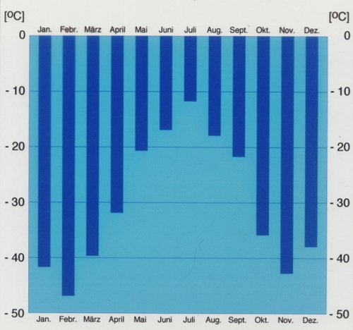 Abb. 1: Mittlere Temperaturen auf Grönland, Eismitte
