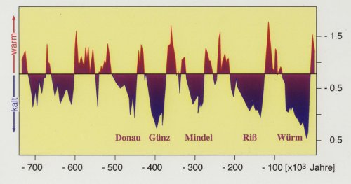 Abb. 2: Wechsel der Warm- und Eiszeiten: Klimakurve der