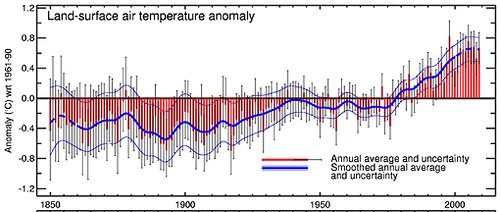 Abb. 4: Verlauf der globalen Durchschnittstemperatur seit 1850.