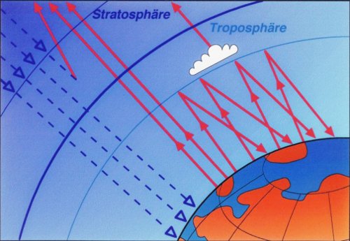 jedoch zum großen Teil in der Troposphäre von Wolken und Treibhausgasen