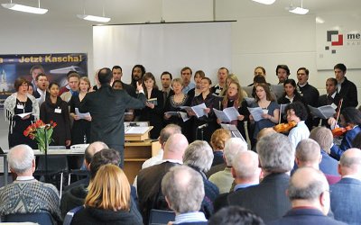 Der Chor der LaRouche-Jugendbewegung bei einem Auftritt im Rahmen des Landtagswahl- kampfs in NRW in Salzuflen.