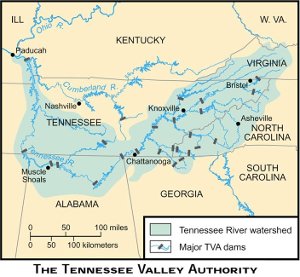 Die 25 Staudämme der Tennessee Valley Authority bildeten einen zentralen Bestandteil des New-Deal-Programms zur Wiederbelebung der Wirtschaft unter Präsident Franklin Roosevelt.