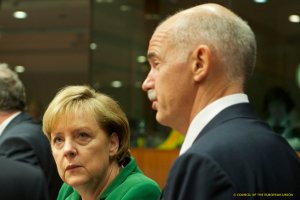 Bundeskanzlerin Angela Merkel und der griechische Premierminister Georgios Papandreou suchen den Aufschwung beim Ratstreffen der EU in Brüssel.