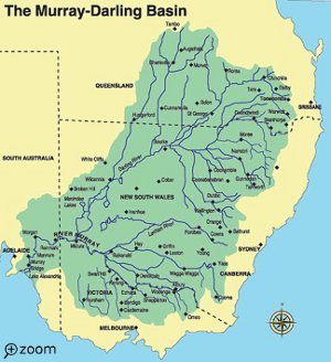 Das Einzugsgebiet der Flüsse Murray und Darling umfaßt einen großen Teil des Südostens von Australien. Hier werden rund 60% der australischen Nahrungsmittelproduktion erzeugt.