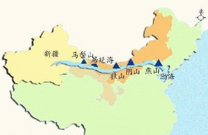 Durch ein gewaltiges Kanalprojekt soll Wasser aus dem Bohai-Meer (rechts) quer durch den Wüstengürtel Nordchinas bis nach Xinjiang (links) gebracht werden.
