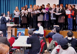 Der Chor der LaRouche-Jugendbewegung eröffnete den Parteitag mit dem Vortrag des Schlußsatzes der 9. Sinfonie von Ludwig van Beethoven.