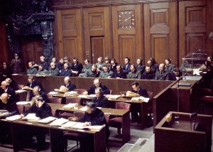 Angeklagte und Verteidiger im Nürnberger Prozeß gegen die am T4-Euthanasie-Programm der Nazis beteiligten Ärzte, der vom 9. Dezember 1946 bis zum 20. August 1947 in Nürnberg stattfand: In Nürnberg wurde am 21. 10. 2010 das „Memorium Nürnberger Prozesse“ eröffnet, um in dem u.a. auch an den Ärzteprozeß erinnert wird.