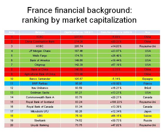 Sie sehen, daß unter den führenden 20 Banken der Welt vier britische und vier französiche Banken sind. Was ich Ihnen mit dieser Grafik zeigen will, ist, daß wir die Illusion haben, daß das heutige Finanzsystem von China und den USA dominiert sei, während tatsächlich europäische Banken - französische und britische Banken - die mächtigsten der Welt sind. Die Realität des heutigen Finanzsystems ist, daß es von europäischen Banken und Finanzunternehmen beherrscht wird.