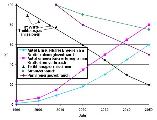 Nach dem Konzept der Bundesregierung sollen auch die Treibhausgas-Emissionen in Deutschland bis zum Jahr 2050 um 80% reduziert werden, „es gibt sogar Stimmen, die besagen: -95%. Das bedeutet, bezogen auf 1990, 1,2 Mrd. t reduzieren sich auf 246 Mio. t (-80%) oder auf 62 Mio. t (-95%). Das ist ein gewaltiger Einschnitt. Daß das ganze auch für den Immobilien-Bereich Konsequenzen haben wird, möchte ich nur am Rande erwähnen, denn der Immobilienbereich wird ja diesen Einsparverpflichtungen ganz erheblich unterworfen, und das Energiekonzept der Bundesregierung ist von den Grundbesitzer-Vereinen, von den Hauseigentümern und Haus- und Grund-Organisationen inzwischen schon heftig bekämpft worden... Die Mieter werden erst recht überfordert, denn das alles wird sicherlich nur zu finanzieren sein, wenn die Mieten entsprechend angehoben werden.“