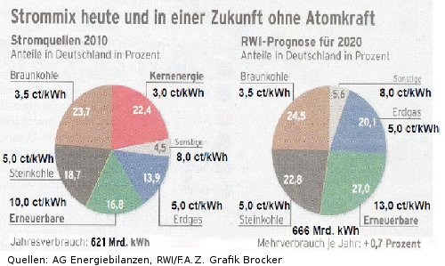Der Beschluß vom 16. März, die älteren deutschen Kernreaktoren vom Netz zu nehmen, habe den Anteil der Kernkraft von zuvor 22,5% auf 15,7% verringert. „Weil die Moratoriums-Kernkraftwerke außer Betrieb genommen wurden, fehlt inzwischen eine ganz erhebliche Deckung.“
