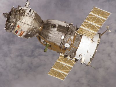 Eine Sojus-Kapsel nach ihrer Abkopplung von der Internationalen Weltraumstation