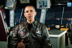 Präsident Barack Obama in seiner Ansprache zum „Tag der Veteranen“ am 12. November, die von Bord des Flugzeugträgers USS Carl Vinson übertragen wurde, wo er zuvor bei einem Basketballspiel zugesehen hatte.