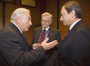Gelddrucker unter sich: Der damalige Direktor des IWF, Dominique Strauss-Kahn, der damalige EZB-Chef Jean-Claude Trichet und Trichets jetziger Nachfolger Mario Draghi beim Jahrestreffen des IWF 2009.