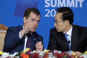 Die Präsidenten von Rußland, Dmitrij Medwedjew, und Südkorea, Lee Myung-bak