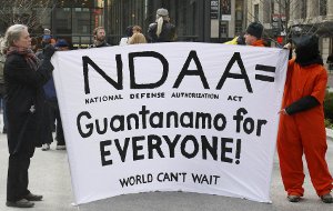 „NDAA = Guantanamo für alle“: Protestaktion gegen die gesetzliche Ermächtigung der Regierung zur Inhaftierung angeblicher Terroristen ohne Anwalt, Anklage oder Prozeß
