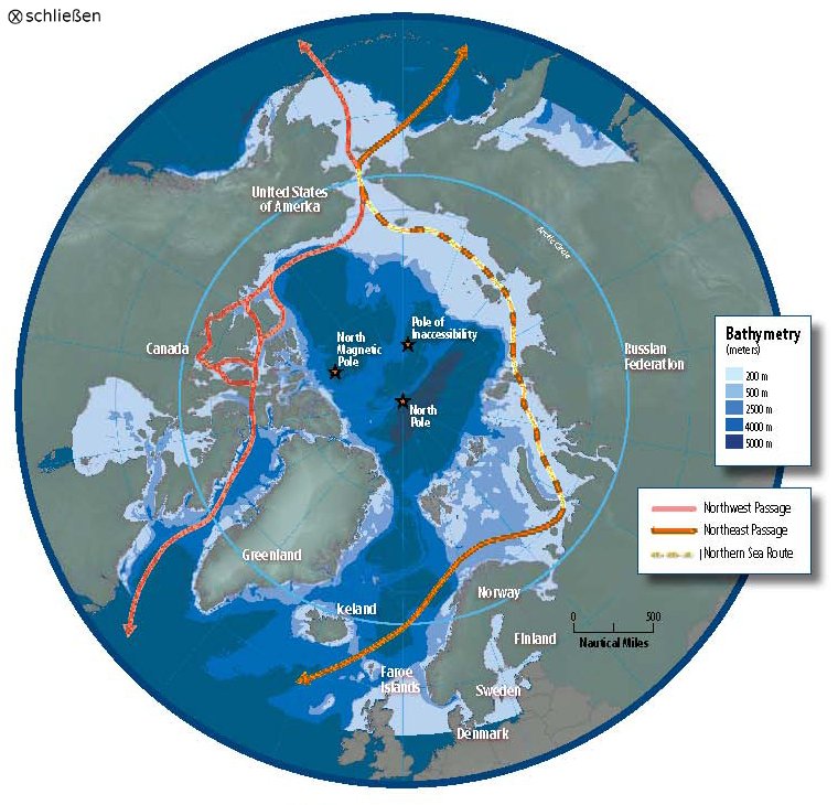 Nach der Jahrhunderte währenden Herrschaft, die das Empire durch seine Kontrolle über die Verkehrswege über die Nationen ausgeübt hat - erst durch die Beherrschung der Schiffahrtswege, dann durch die Verhinderung und Zerstörung kontinentaler Entwicklungsachsen wie Eisenbahnen, Kanälen usw. - wird die Eröffnung des nördlichen Seeweges, die einen Gütertransport von Beijing nach Irland über den Nordpol schneller machen wird als durch den politisch instabilen Suezkanal, die geopolitische Weltkarte verändern.