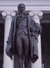Das Denkmal Alexander Hamiltons vor dem US-Finanzministerium. Hamilton sorgte dafür, daß der amerikanischen Verfassung ein Kreditsystem zugrundeliegt.