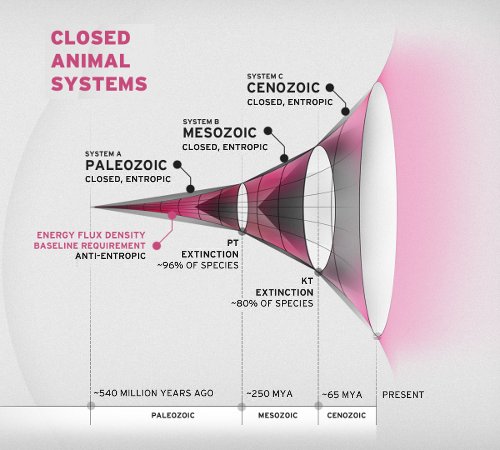 Die jungen Forscher vom „Basement-Team“ haben in den LPAC-Sendungen Ende Januar und Anfang Februar diese (hier natürlich nur knapp zusammengefaßte) LaRouche-Ökonomie ergänzt. Sie lieferten klare Beweise dafür, daß die Evolution als Grundmerkmal aller drei Phasenräume wiederholt einen „höheren Gang“ bei der Energieflußdichte einlegt, und daß die Unfähigkeit, sich an diese Änderung anzupassen, der Grund für Massenaussterben in der Geschichte war, als z.B. an der Wende vom Paläozoikum zum Mesozoikum und der vom Mesozoikum zum Känozoikum (Erdneuzeit) jeweils bis zu 98% aller Arten ausstarben.